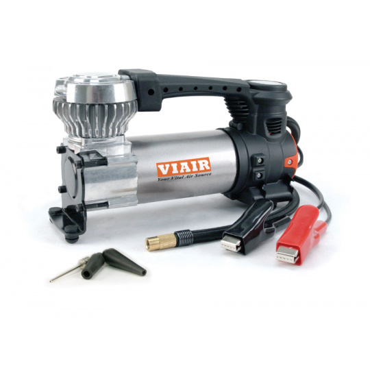 Kompresor VIAIR 88P je kompaktní, ale výkonný přenosný kompresor, schopný nafukování pneumatik o průměru až 33". Připojení ke zdroji energie pomocí Heavy-duty svorek na autobaterii. Tlak v pneumatikách lze sledovat na analogovém manometru, který je integrován do těla kompresoru. Připojovací adaptér k ventilku je šroubovací pro zajištění pevného a těsného spojení. Popis: