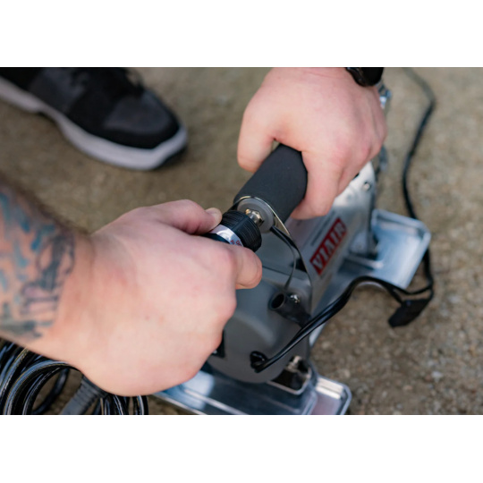 Pozor: Hadice, která je dodávána v balení může vlivem dlouhodobého působení UV záření křehnout. Po použití ji proto uložte do brašny nebo jiného ochranného obalu. Během použití zajistěte, že hadice nepřijde do kontaktu s hlavou kompresoru. Vzhledem k tomu, že hlava kompresoru se výrazně zahřívá, hrozí natavení hadice. Použití přiložené hadice není doporučeno při mrazech.