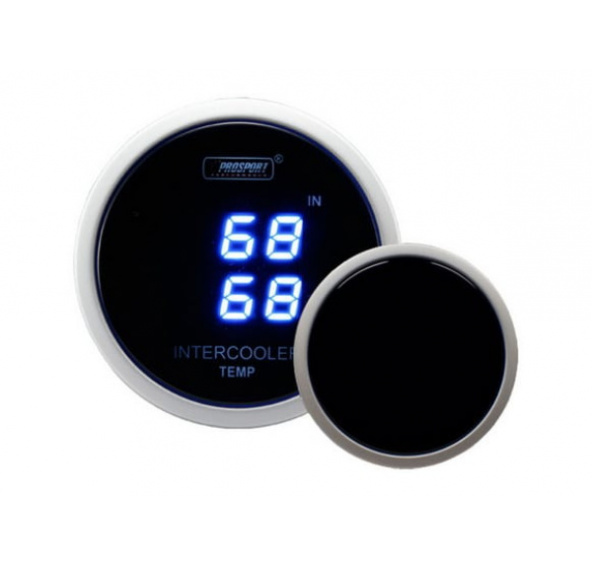PROSPORT duální ukazatel teploty vzduchu s modrým podsvícením. Pomocí 2ks elektronických čidel (součástí balení) umožňuje měření teploty vzduchu na dvou místech soustavy. Ideální využití je pro měření teploty nasávaného vzduchu před intercoolerem a za ním.