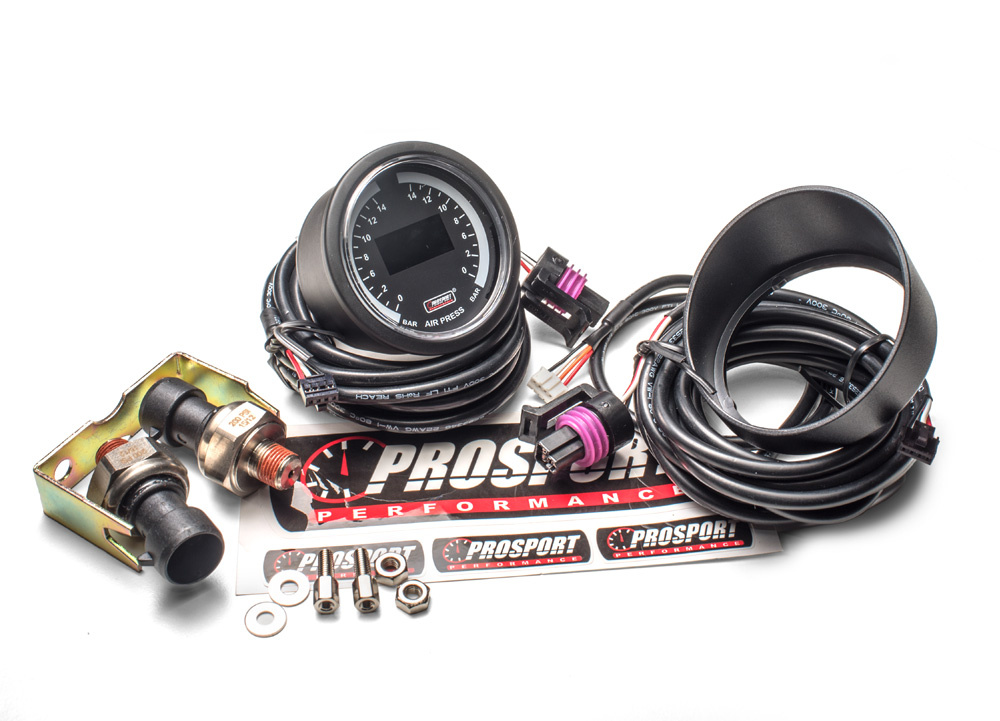 PROSPORT duální digitální ukazatel tlaku vzduchu s LED stupnicí po obvodu pro každou měřenou hodnotu zvlášť. Pomocí 2ks elektronických čidel (součástí balení) umožňuje měření tlaku vzduchu na dvou místech soustavy. Navíc není třeba tahat hadičku až k budíku, ale vše je řešeno elektronicky pomocí kabelu. Jedná se o novou verzi vybavenou spolehlivějšími a kompaktnějšími snímači tlaku vzduchu.