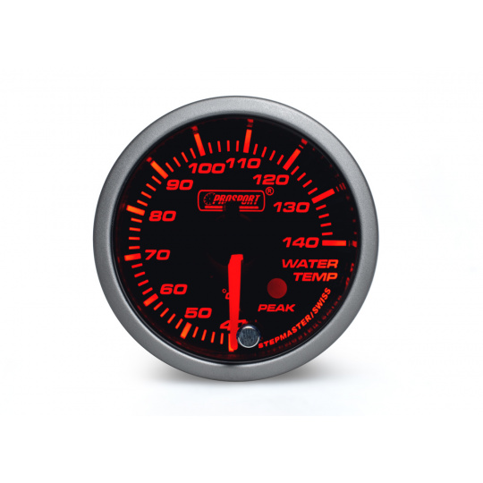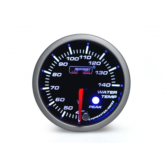 Přídavný ukazatel teploty vody Prosport Performance ze série Premium. Ukazatel je vybaven krokovým motorkem, který zaručuje maximální přesnost. Zároveň umožňuje nastavit špičkovou hodnotu, při jejímž dosažení se ukazatel zbarví do červena, rozsvítí varovnou diodu a ozve se zvukový signál.Podsvícení je možné přepínat mezi červeným a bílým a ideálně tak sladit vzhled budíku s interiérem vozu. Při otočení klíčku proběhne u každého budíku uvítací ceremoniál, při kterém je prověřen pohyb ručky v celém rozsahu (Scan), varovná LED dioda a funkčnost zvukového signálu. Poté se budík ustálí ve Vámi zvoleném barevném nastavení.