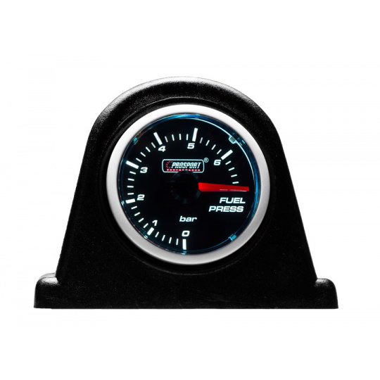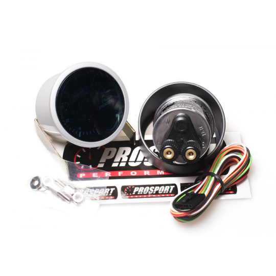 Přídavný ukazatel tlaku paliva Prosport Performance ze série Smoke Lens. Ukazatel je vybaven krokovým motorkem, který zaručuje maximální přesnost. Budík má černý podklad podsvícený bílou diodou s červenou ručičkou. Při otočení klíčku proběhne u každého budíku uvítací ceremoniál, při kterém je prověřen pohyb ručky v celém rozsahu (Scan). Poté se budík ustálí ve Vámi zvoleném barevném nastavení.