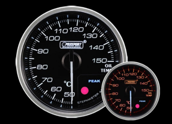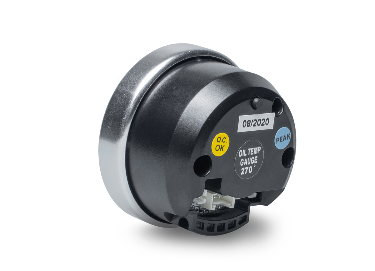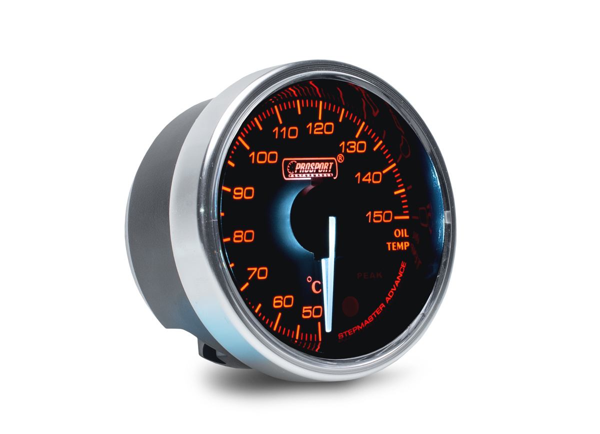 Přídavný ukazatel teploty oleje Prosport Performance - elektronický s jemnou 270° stupnicí s měřeným rozsahem 50 až 150°C ze série Supreme Series. Ukazatel je vybaven moderním krokovým motorkem Stepmaster Advance, který zaručuje maximální přesnost. Zároveň umožňuje nastavit Peak hodnotu, při jejímž dosažení se ukazatel zbarví do červena, rozsvítí varovnou diodu a ozve se zvukový signál.