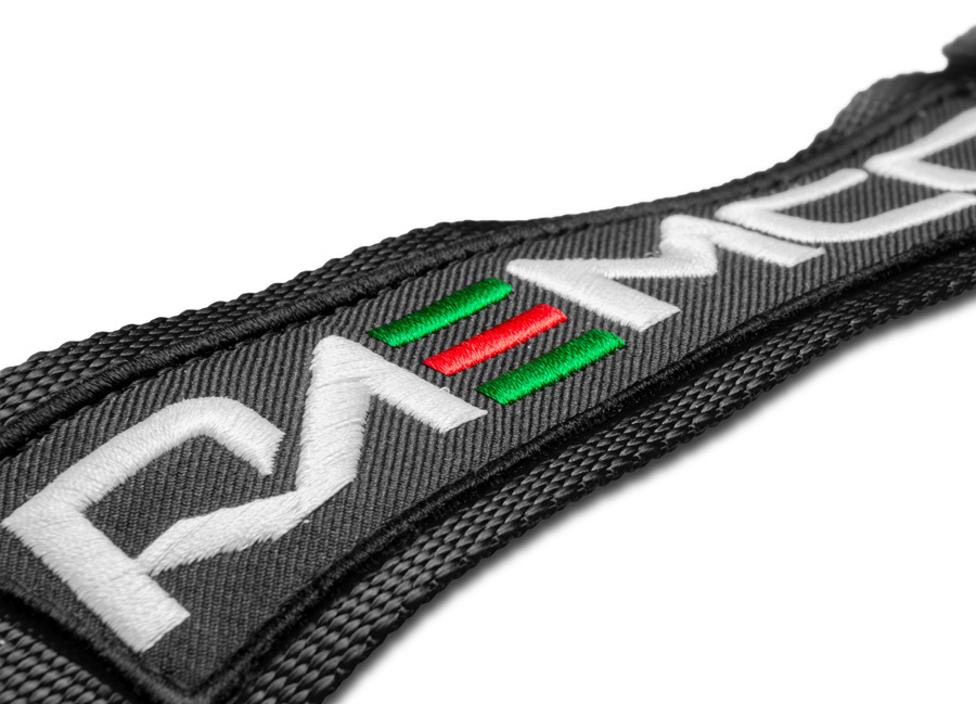 V oblasti pasu je pás s přezkou vypodložen pro větší pohodlí při denním používání. Kotvení pásu se provádí pomocí přiložených závitových ok buď do základny sedačky nebo do původního místa pro kotvení pásů. Pás je v zadní části, krátce za spojením ramenních popruhů, odpojitelný, což umožňuje využití vozu i na zadních sedačkách (při použití originálního pásu). Na obou ramenních popruzích je vyšité logo Raemco.