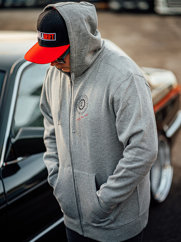Limitovaná mikina na zip s kapucí v šedé barvě pro všechny automobilové nadšence, kteří si užívají jízdu s námi již od roku 1999.