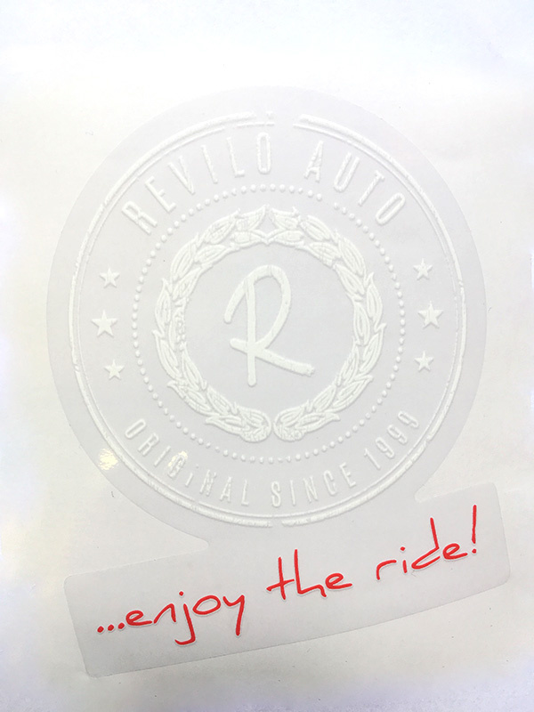 Samolepku lze snadno umístit na sklo, karosérii či jiný hladký povrch.
