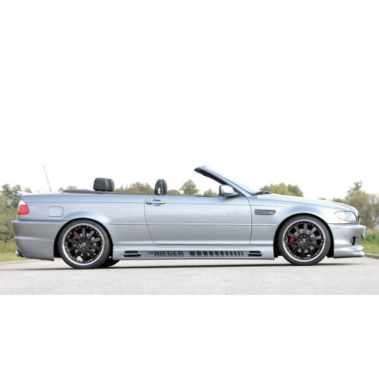 Rieger boční práh (185mm) mont. strana levá pro BMW řada 3 E46, E46 M3 compact, kabriolet, kupé, sedan vč. faceliftu, r.v. 02/02-, 02/98-12/01, 06/00-, plast ABS bez povrchové úpravy, s prolisem, s prolisem a dvěma výřezy