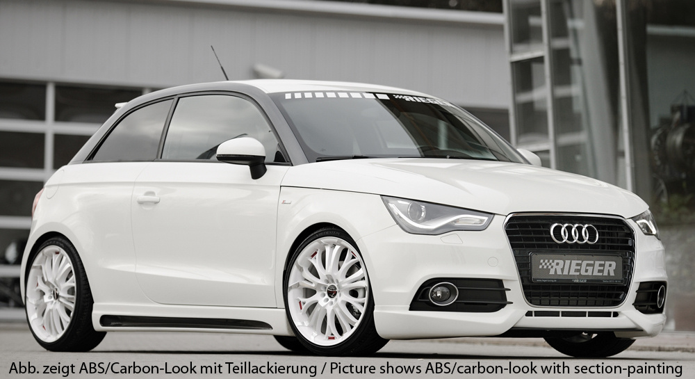 Rieger boční práh mont. strana levá pro Audi A1 8X 3-dvéř., 5-dvéř. (sportback) vč. faceliftu, r.v. 02/15-, 08/10-12/14, plast ABS s povrchovou úpravou Carbon-Look, s prolisem a výřezem