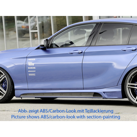 Rieger boční práh mont. strana levá pro BMW řada 1 F20 sedan / 4-dvéř. vč. faceliftu, r.v. 05/2015-, 09/11-03/2015, plast ABS bez povrchové úpravy, s prolisem a výřezem