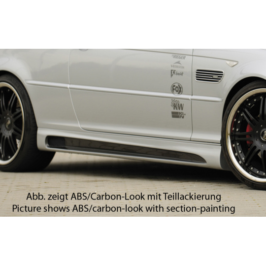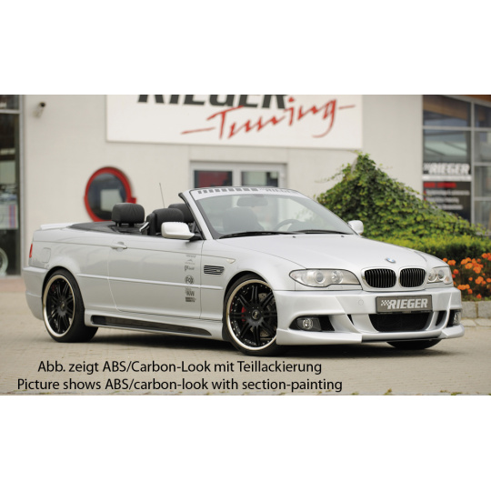 Rieger boční práh mont. strana levá pro BMW řada 3 E46, E46 M3 compact, kabriolet, kupé, sedan vč. faceliftu, r.v. 02/02-, 02/98-12/01, 06/00-, plast ABS s povrchovou úpravou Carbon-Look, s prolisem a výřezem