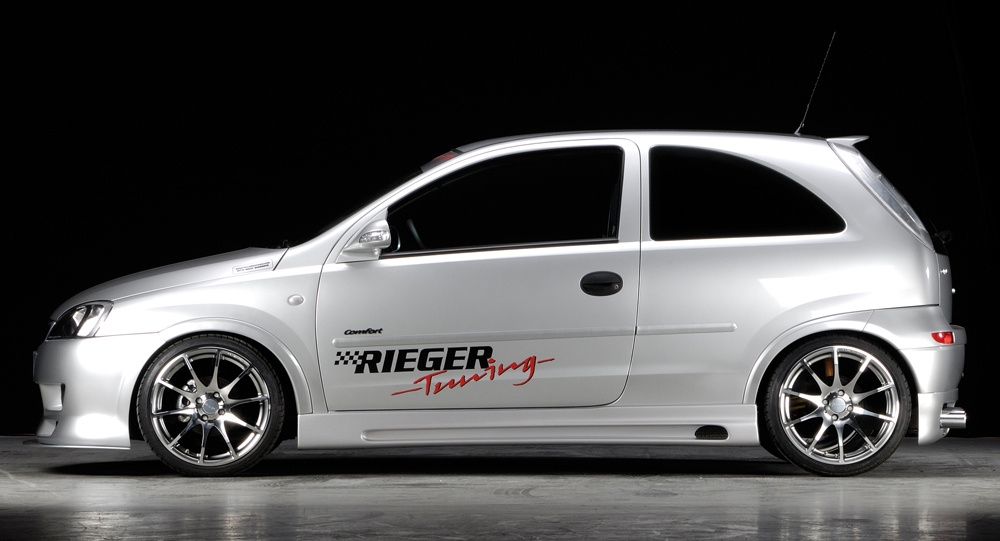 Rieger boční práh mont. strana levá pro Opel Corsa C 3-dvéř. vč. faceliftu, r.v. 06/03-, 09/00-05/03, plast ABS bez povrchové úpravy, s prolisem a výřezem