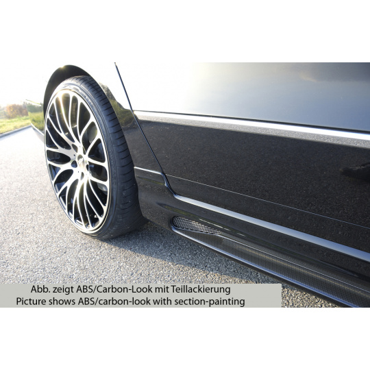 Rieger boční práh mont. strana levá pro Volkswagen Passat 3C combi, sedan vč. faceliftu, r.v. 03/05-07/10, 08/10-, plast ABS s povrchovou úpravou Carbon-Look, s prolisem a výřezem
