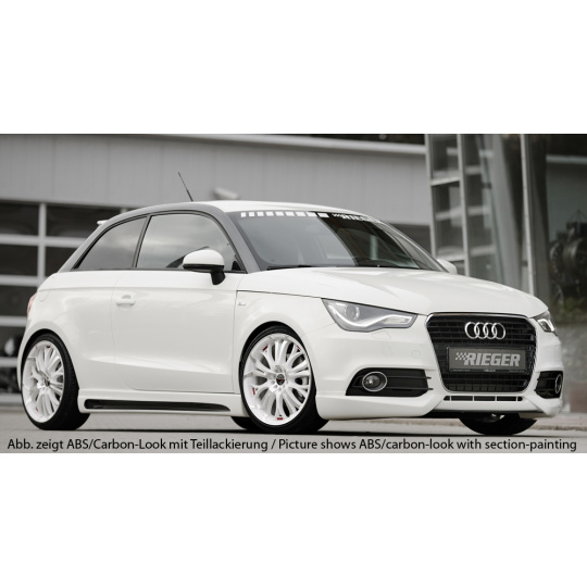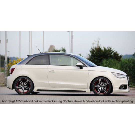 Rieger boční práh mont. strana pravá pro Audi A1 8X 3-dvéř., 5-dvéř. (sportback) vč. faceliftu, r.v. 02/15-, 08/10-12/14, plast ABS s povrchovou úpravou Carbon-Look, s prolisem a výřezem