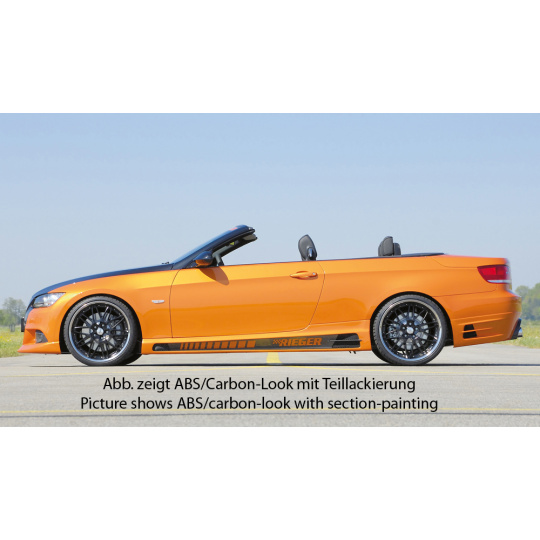 Rieger boční práh mont. strana pravá pro BMW řada 3 E92, E93 kabriolet, kupé vč. faceliftu, r.v. 03/07-02/10, 03/10-, 09/06-02/10, plast ABS s povrchovou úpravou Carbon-Look, s prolisem, s prolisem a dvěma výřezy