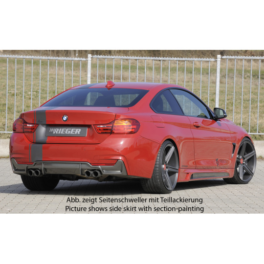 Rieger boční práh mont. strana pravá pro BMW řada 4 F32, F33 coupe (3-dvéř.), kabriolet vč. faceliftu, r.v. 03/13-06/15, 07/15-, 11/12-06/15, plast ABS bez povrchové úpravy, s prolisem a výřezem