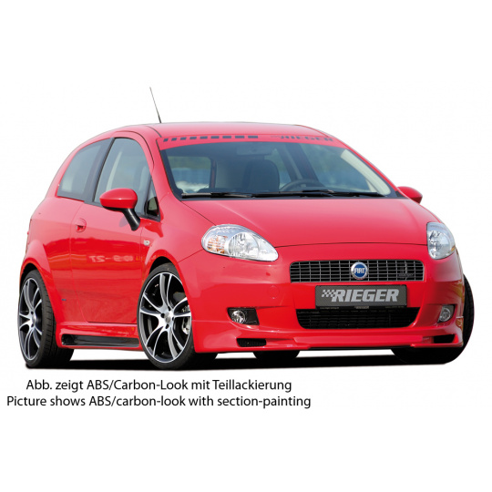 Rieger boční práh mont. strana pravá pro Fiat Grande Punto 199 3-dvéř., 5-dvéř., r.v. 10/05-, plast ABS s povrchovou úpravou Carbon-Look, s prolisem a výřezem