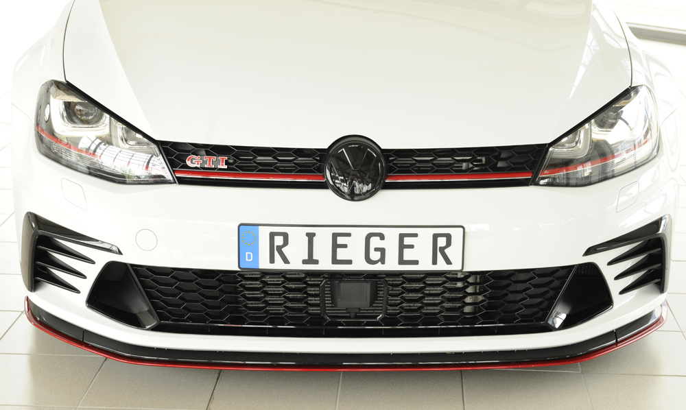 Lipa od německého výrobce Rieger Tuning je určena pro vozy Volkswagen Golf 7 GTI Clubsport (karoserie 3-dvéř. a 5-dvéř., rok výroby od 02/16). Vyrobena je z kvalitního plastu ABS bez povrchové úpravy, který je lehký, odolný a vhodný pro případné lakování. Lipa zvýrazňuje sportovní vzhled vozidla, zlepšuje aerodynamiku a přesně pasuje pod originální přední nárazník modelu GTI Clubsport.