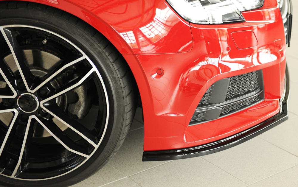 Rieger lipa pod přední nárazník pro Audi A3 8V 3-dvéř. (convertible 8V7), 5-dvéř. (sedan 8VS) po faceliftu, 09/16-, plast ABS lakovaný do černé lesklé barvy