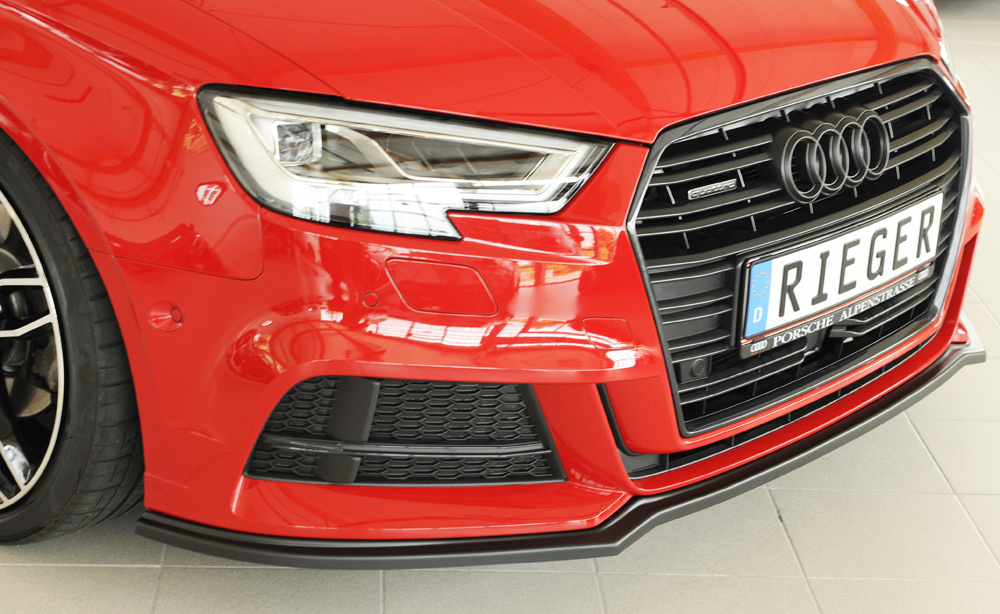 Rieger lipa pod přední nárazník pro Audi A3 S3 8V 3-dvéř. (convertible 8V7), 5-dvéř. (sedan 8VS) po faceliftu, 09/16-, plast ABS bez povrchové úpravy