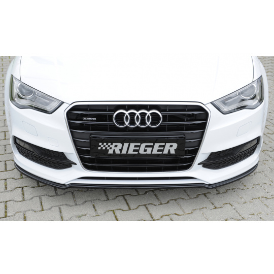 Rieger lipa pod přední nárazník pro Audi A3 S3 8V 3-dvéř. (convertible 8V7), 5-dvéř. (sedan 8VS) před faceliftem, 05/13-08/16, plast ABS lakovaný do černé lesklé barvy