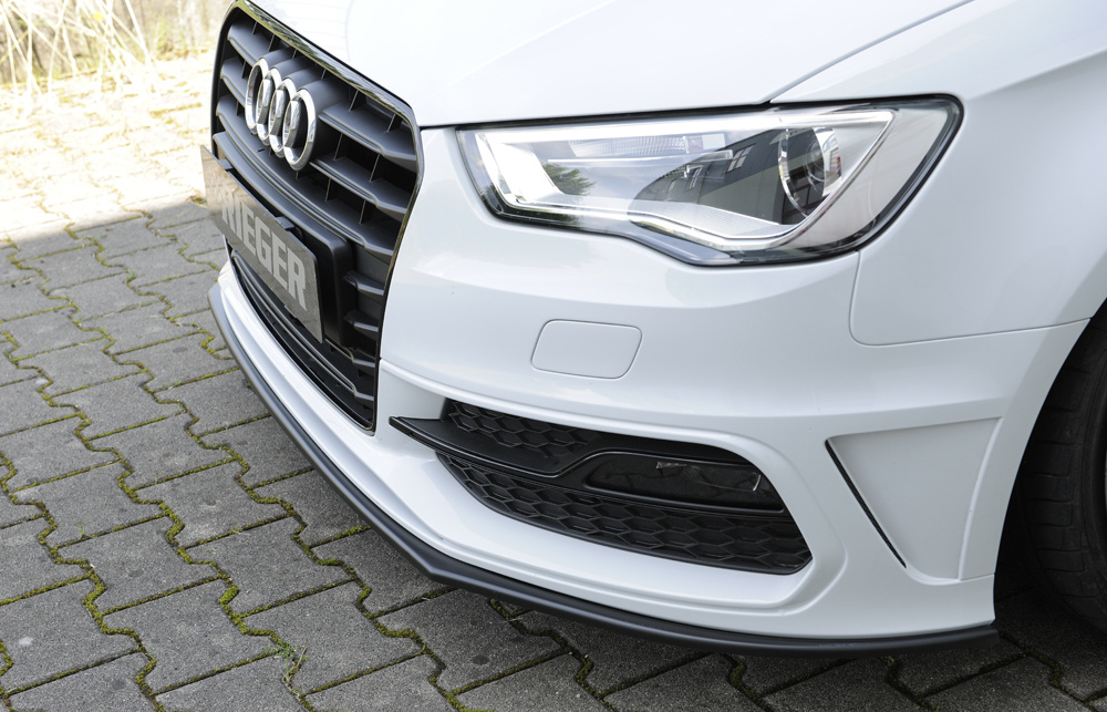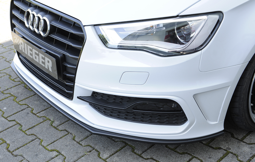 Rieger lipa pod přední nárazník pro Audi A3 S3 8V 3-dvéř. (hatchback 8V1), 5-dvéř. (sportback 8VA) před faceliftem, 05/13-08/16, plast ABS bez povrchové úpravy