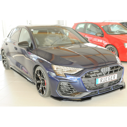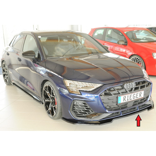 Rieger lipa pod přední nárazník pro Audi A3 S3 GY 5-dvéř. (sportback), 06/24-, plast ABS lakovaný do černé lesklé barvy