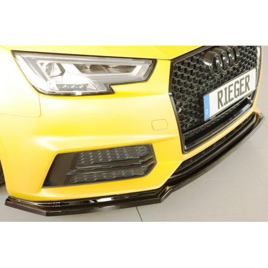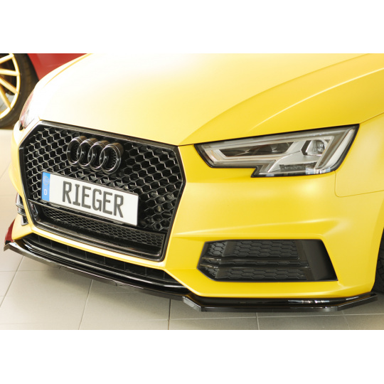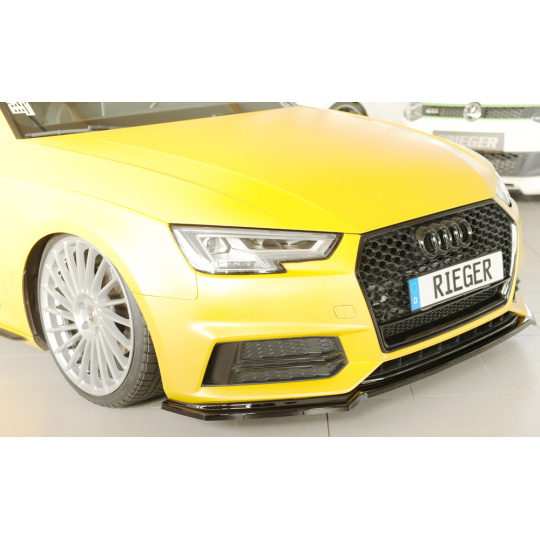 Rieger lipa pod přední nárazník pro Audi A4 S4 B9, F4 avant, 08/15-07/18, plast ABS lakovaný do černé lesklé barvy