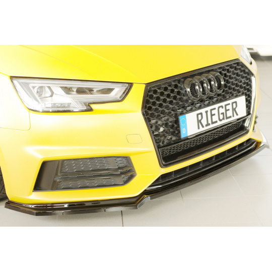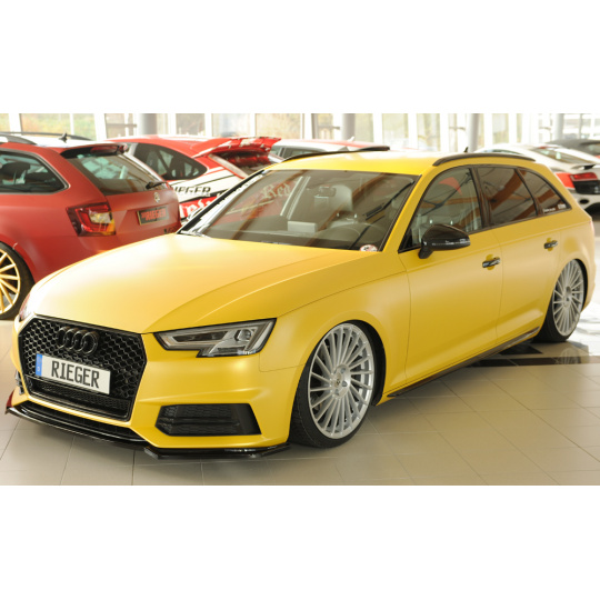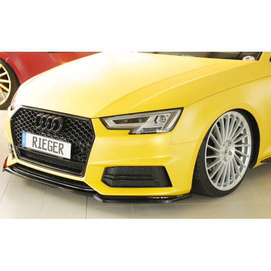 Lipa od Rieger Tuning pro Audi A4 S4 (typ B9, F4 avant, 08/15–07/18) vyrobena z ABS lakovaného do černé lesklé barvy. Precizně sedí pod originální S-Line nárazník a zvyšuje vizuální atraktivitu vozu.