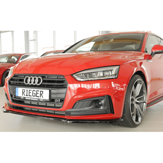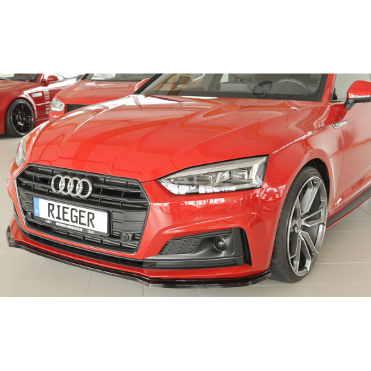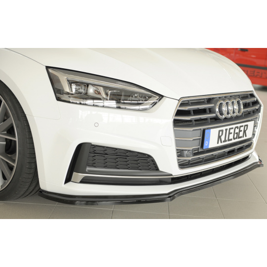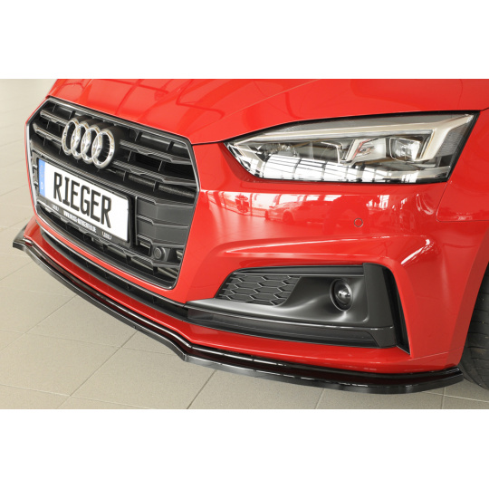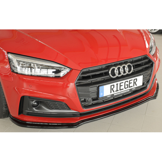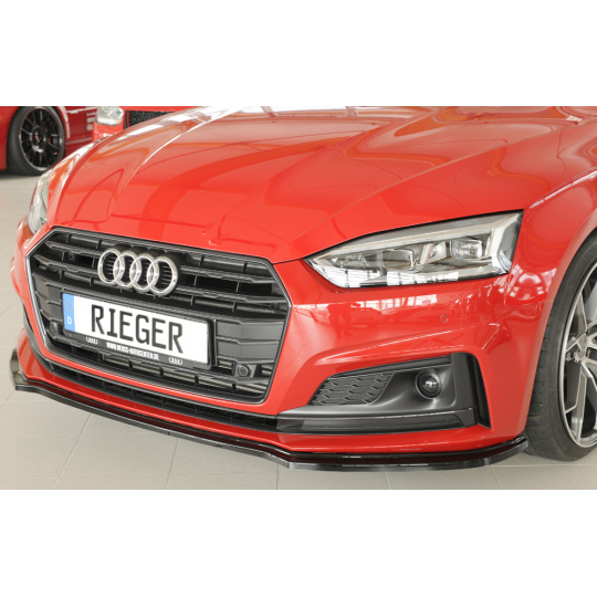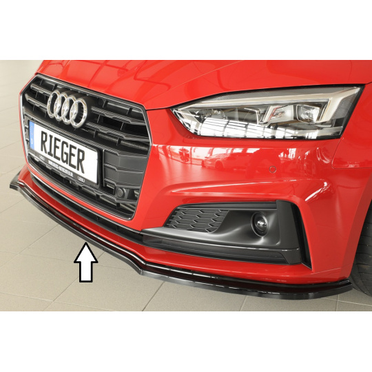 Rieger lipa pod přední nárazník pro Audi A5 S5 B9, F5 kabriolet, kupé, Sportback před faceliftem, 11/16-12/19, plast ABS lakovaný do černé lesklé barvy