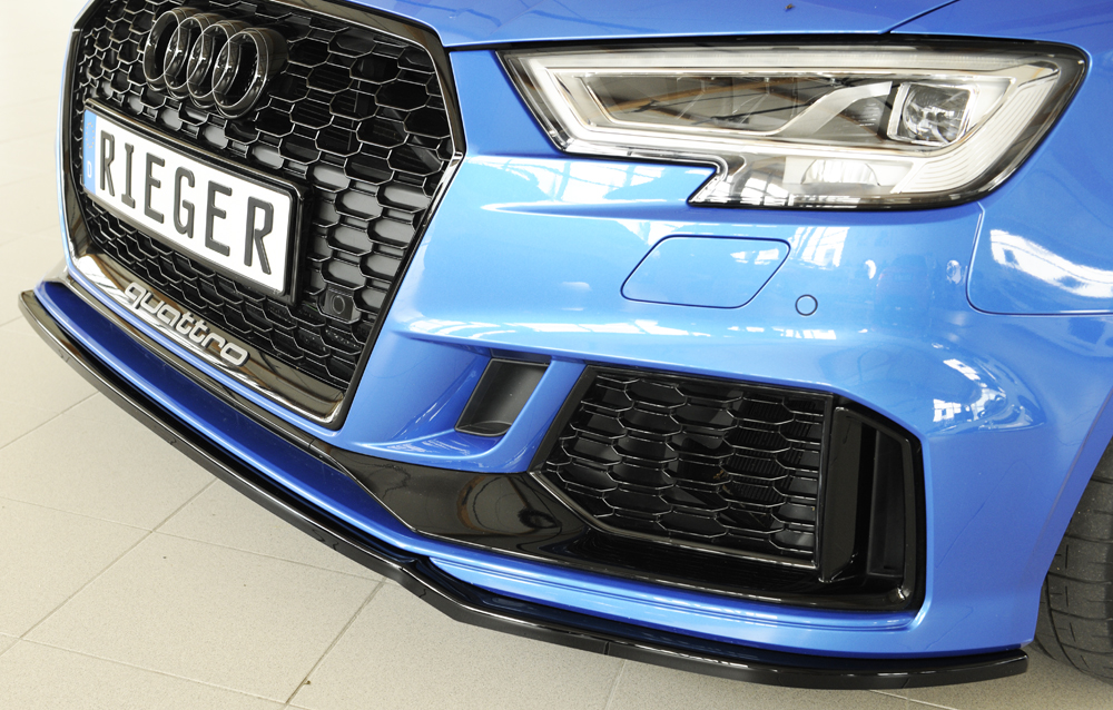 Rieger lipa pod přední nárazník pro Audi RS3 8V 5-dvéř. (sedan 8VS / 8VM), 5-dvéř. (sportback 8VA / 8VF) po faceliftu, 02/17-, plast ABS lakovaný do černé lesklé barvy