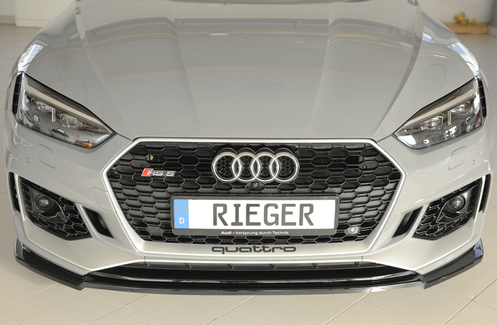 Rieger lipa pod přední nárazník pro Audi RS5 B9, F5 kupé, 03/17-02/20, plast ABS lakovaný do černé lesklé barvy