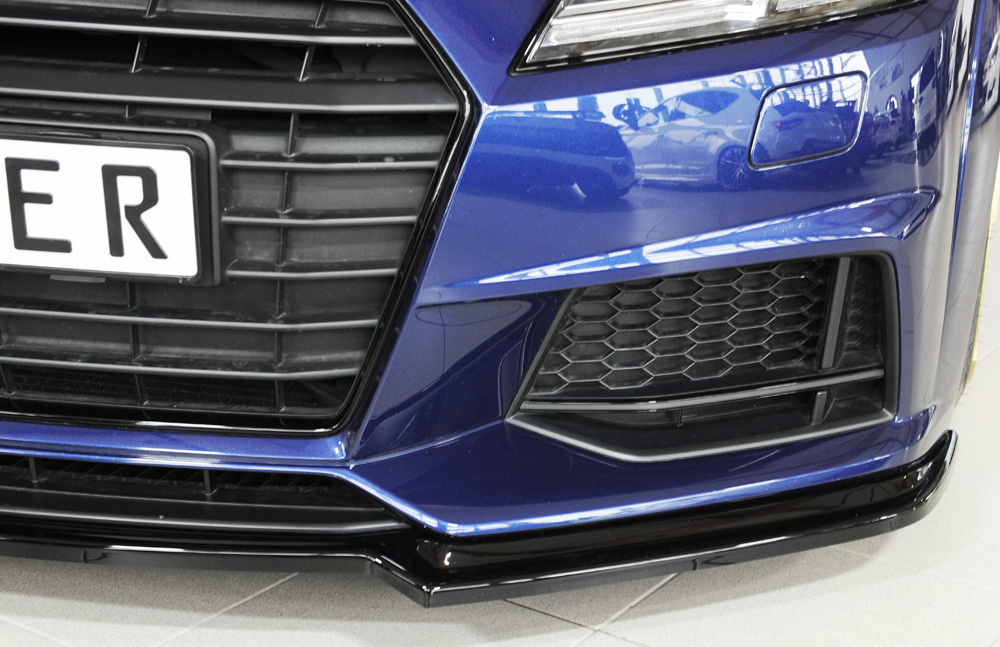 Rieger lipa pod přední nárazník pro Audi TT 8J-FV, 8S kupé, roadster vč. faceliftu, 07/14-08/18, 09/18-, plast ABS lakovaný do černé lesklé barvy