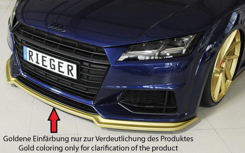 Lipa od Rieger Tuning pro Audi TTS (typ 8J-FV, 8S, 07/14–08/18). Vyrobena z ABS plastu bez povrchové úpravy, připravená pro lakování.