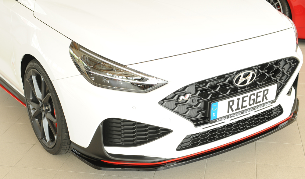 Prémiová sportovní lipa od německého výrobce Rieger Tuning určena pro model Hyundai i30 N-Performance (typ PDE, 5d fastback) s rokem výroby od 05/21–. Vyrobena z odolného plastu ABS lakovaného do černé lesklé barvy, který dodává vozu výrazný sportovní vzhled a elegantní lesk. Lipa zároveň přispívá ke zlepšení aerodynamiky a opticky snižuje přední část vozidla.