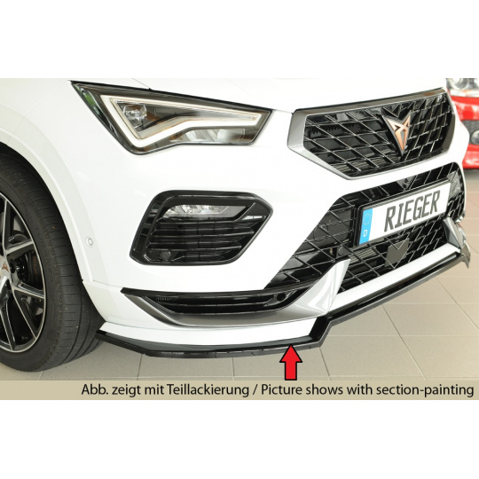 Sportovní lipa od německého výrobce Rieger Tuning určená pro Seat Ateca Cupra (typ 5FP) s rokem výroby od 08/2020–. Vyrobena z kvalitního plastu ABS bez povrchové úpravy, který je ideální pro případné lakování dle barvy vozu. Lipa zvýrazňuje sportovní charakter SUV Ateca a zlepšuje aerodynamiku přední části vozu.
