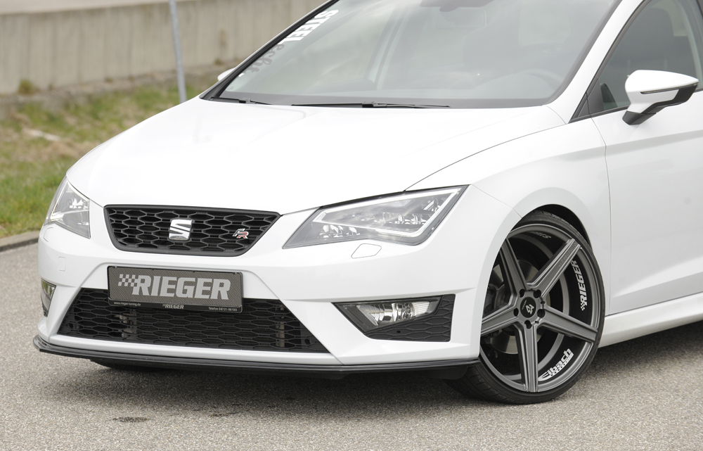 Prémiová lipa Rieger Tuning pro Seat Leon FR (typ 5F, 01/13–12/16) v elegantním černém lesklém provedení. Vhodná pod originální FR-/Cupra nárazník bez nutnosti úprav.