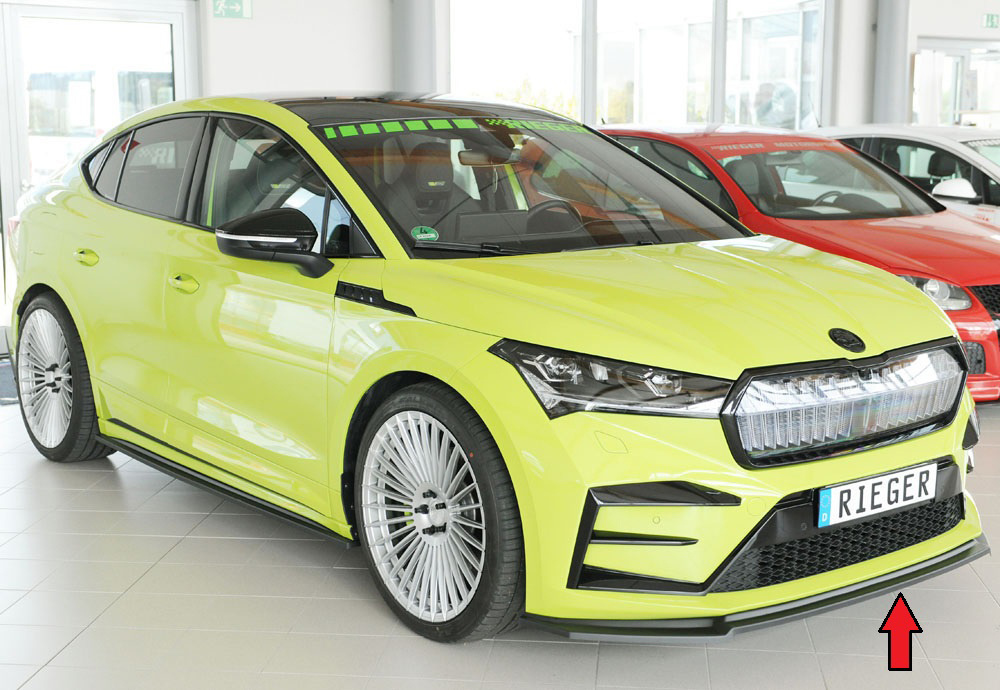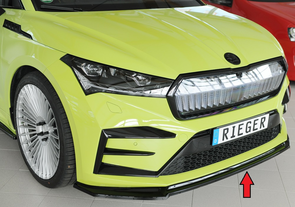 Rieger lipa pod přední nárazník pro Škoda Enyaq iV RS SUV (5AZ), 07/21-, plast ABS lakovaný do černé lesklé barvy