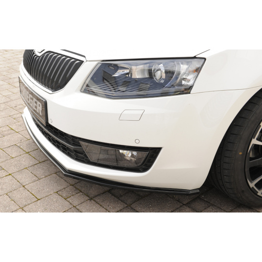 Rieger lipa pod přední nárazník pro Škoda Octavia 5E combi, sedan před faceliftem, 02/13-01/17, plast ABS lakovaný do černé lesklé barvy, ABS plast: lakovaný do černé lesklé barvy