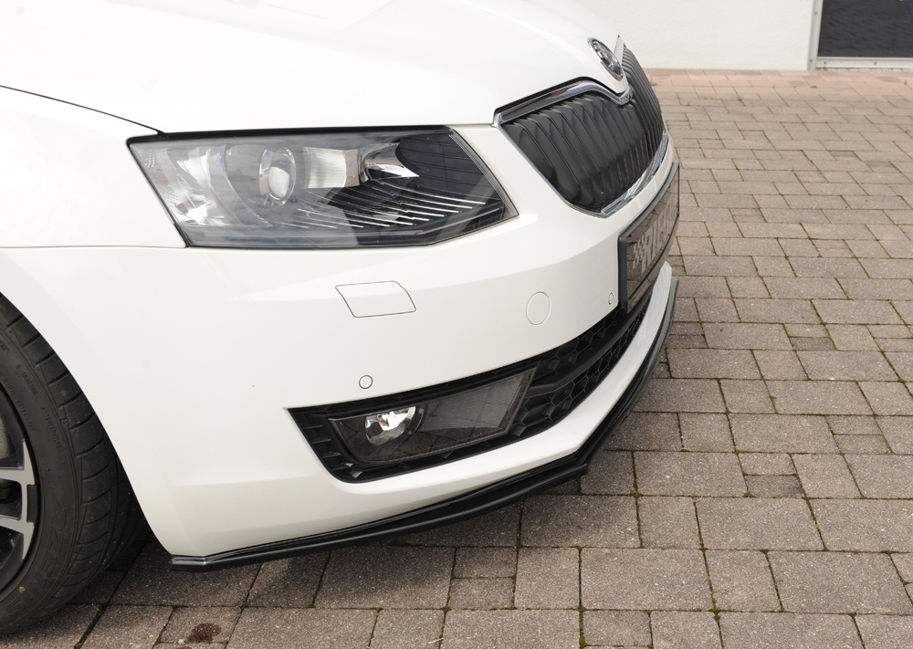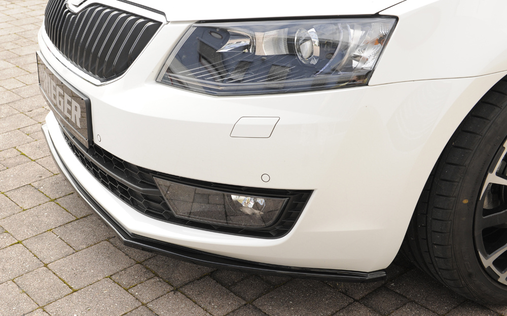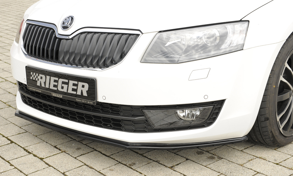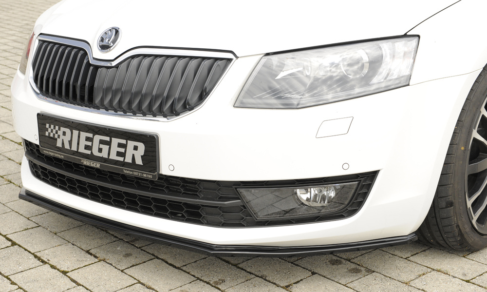 Rieger lipa pod přední nárazník pro Škoda Octavia 5E combi, sedan před faceliftem, 02/13-01/17, plast ABS lakovaný do černé lesklé barvy, ABS plast: lakovaný do černé lesklé barvy