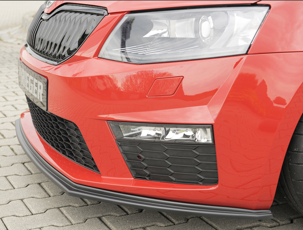 Originální lipa Rieger Tuning pro Škoda Octavia RS 5E (combi, sedan, 06/2013–01/2017), vyrobená z plastu ABS bez povrchové úpravy. Vhodná pro montáž pod originální RS přední nárazník.
