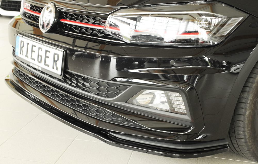 Rieger lipa pod přední nárazník pro Volkswagen Polo AW 5-dvéř., 06/17-, plast ABS lakovaný do černé lesklé barvy