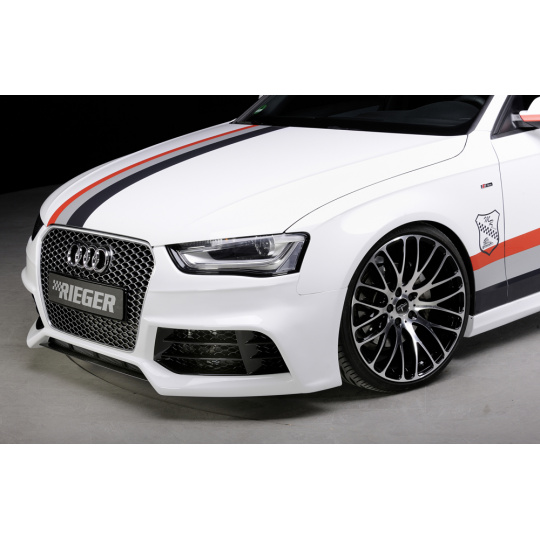 Designová lipa Rieger Tuning pro Audi A4 B8/B81 po faceliftu (avant/sedan). Vyrobena z ABS plastu s povrchovou úpravou Carbon-Look. Montáž pod nárazník Rieger – kódy K 00055540 až K 00055547. Vhodné pro verze se i bez S-Line exteriéru (ABE).