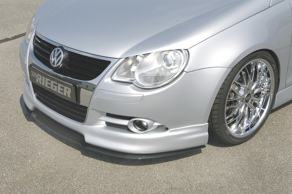 Lipa od německého výrobce Rieger Tuning určená pro Volkswagen Eos 1F kabriolet (před faceliftem, 04/06–11/10). Vyrobena z plastu ABS s povrchovou úpravou Carbon-Look. Montáž pod přední spoiler Rieger (obj. kód Y 00059426, identické s 99749).