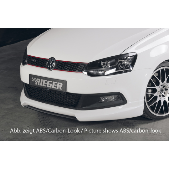 Lipa od německého výrobce Rieger Tuning pro Volkswagen Polo 6 GTI (3d/5d, před faceliftem 05/2010–01/2014). Vyrobena z plastu ABS bez povrchové úpravy. Montáž pod přední spoiler Rieger – obj. kódy K 00047211, K 00047215.