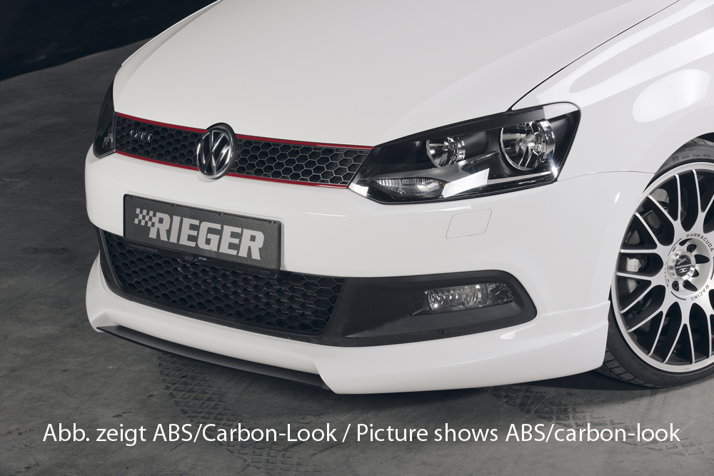 Lipa od německého výrobce Rieger Tuning pro Volkswagen Polo 6 GTI (3d/5d, před faceliftem 05/2010–01/2014). Vyrobena z plastu ABS bez povrchové úpravy. Montáž pod přední spoiler Rieger – obj. kódy K 00047211, K 00047215.