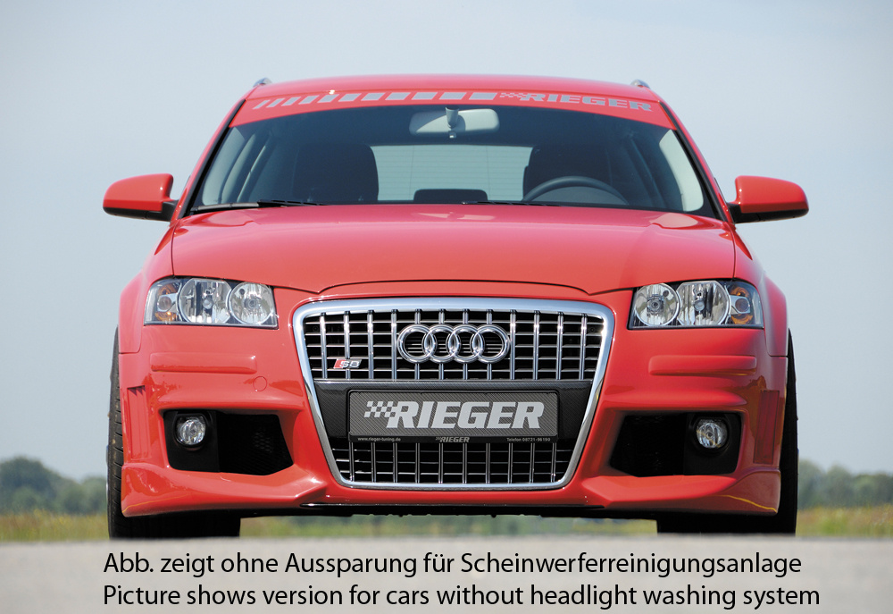 Rieger přední nárazník pro Audi A3 8P 3-dvéř., 5-dvéř., Sportback, plast ABS bez povrchové úpravy, s držáky pro originální mlhová světla, s žebrováním, pro vozy s ostřikovači světlometů