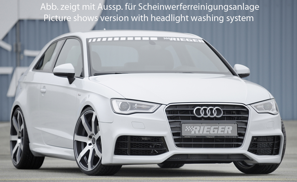 Rieger přední nárazník pro Audi A3 S3 8V 3-dvéř. (hatchback 8V1), 5-dvéř. (sportback 8VA) před faceliftem, plast ABS bez povrchové úpravy, pro vozy bez ostřikovačů světlometů a bez parkovacího asistenta (PDC)