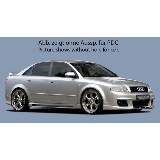 Rieger přední nárazník pro Audi A4 8E avant, sedan, plast ABS bez povrchové úpravy, s žebrováním, pro vozy s parkovacím asistentem (PDC) a ostřikovači světlometů