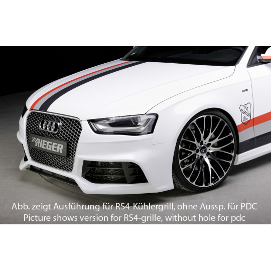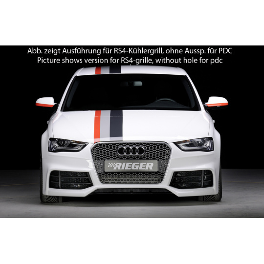 Rieger přední nárazník pro Audi A4 B8, B81 avant, sedan po faceliftu, plast ABS bez povrchové úpravy, pro masku A4/S4, pro vozy s parkovacím asistentem (PDC)