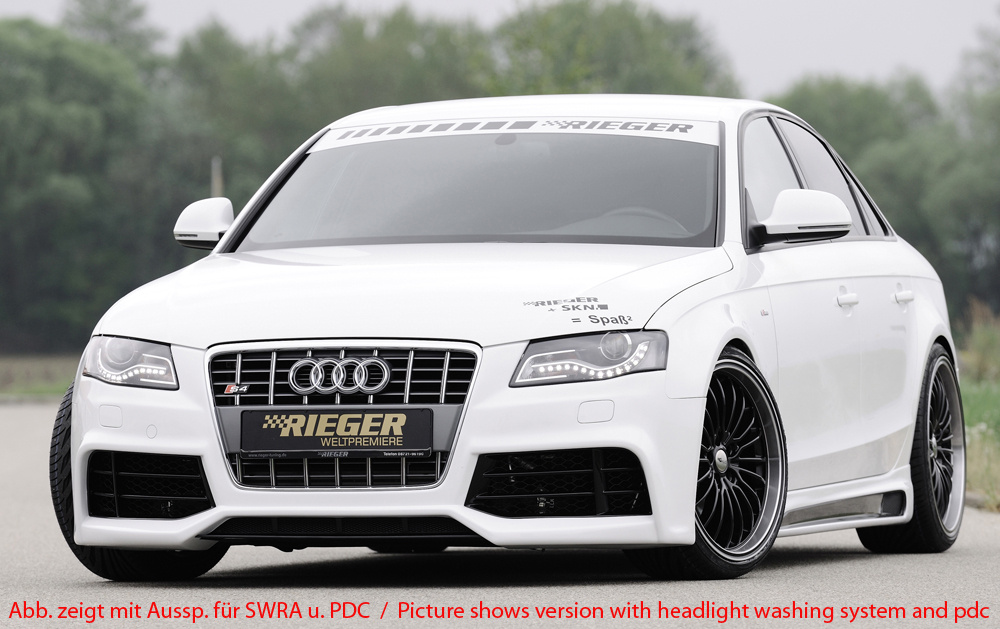Rieger přední nárazník pro Audi A4 S4 B8, B81 avant, sedan před faceliftem, plast ABS bez povrchové úpravy, pro vozy s ostřikovači světlometů